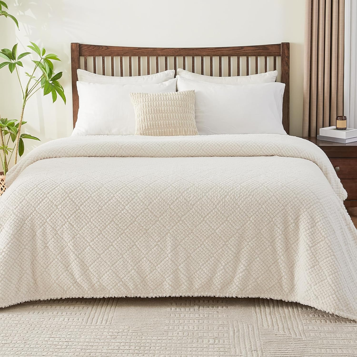 Home » Products » Fleece Blanket, 3D Jacquard Throw Blanket for Couch and Bed, Soft Cozy and Fluffy Blankets Lightweight Luxury Flannel with Waffle Design (Ivory)