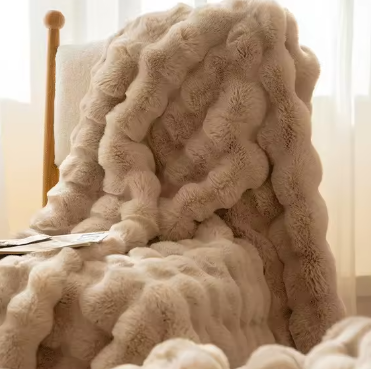 Elevate your living space with our Home Faux Fur Throw Blanket. Designed for ultimate luxury, this blanket features an ultra-soft, fuzzy plush fabric with a unique bubble texture that adds visual and tactile interest to any room. Drape it over your couch or sofa to instantly create a cozy, inviting atmosphere perfect for relaxing, reading, or entertaining guests. It's the essential accent piece that combines exceptional comfort with stylish home decor.
