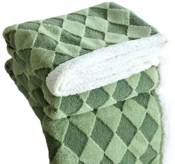 Elevate your home comfort with our premium checkered flannel blanket, designed to blend style and coziness seamlessly. Featuring a charming diamond-patterned textured flannel surface and a plush sherpa border, this blanket offers a soft, tactile experience while adding a warm, decorative touch to any living space.
